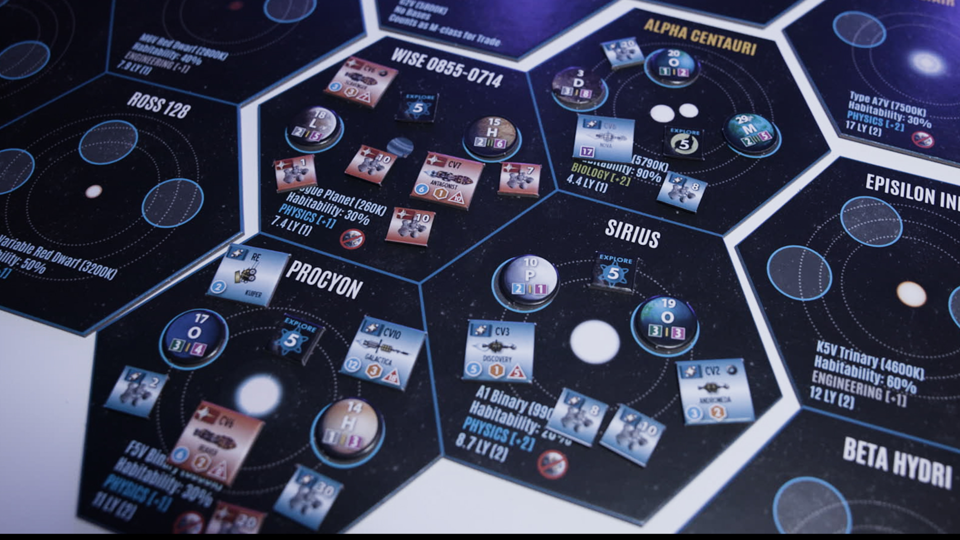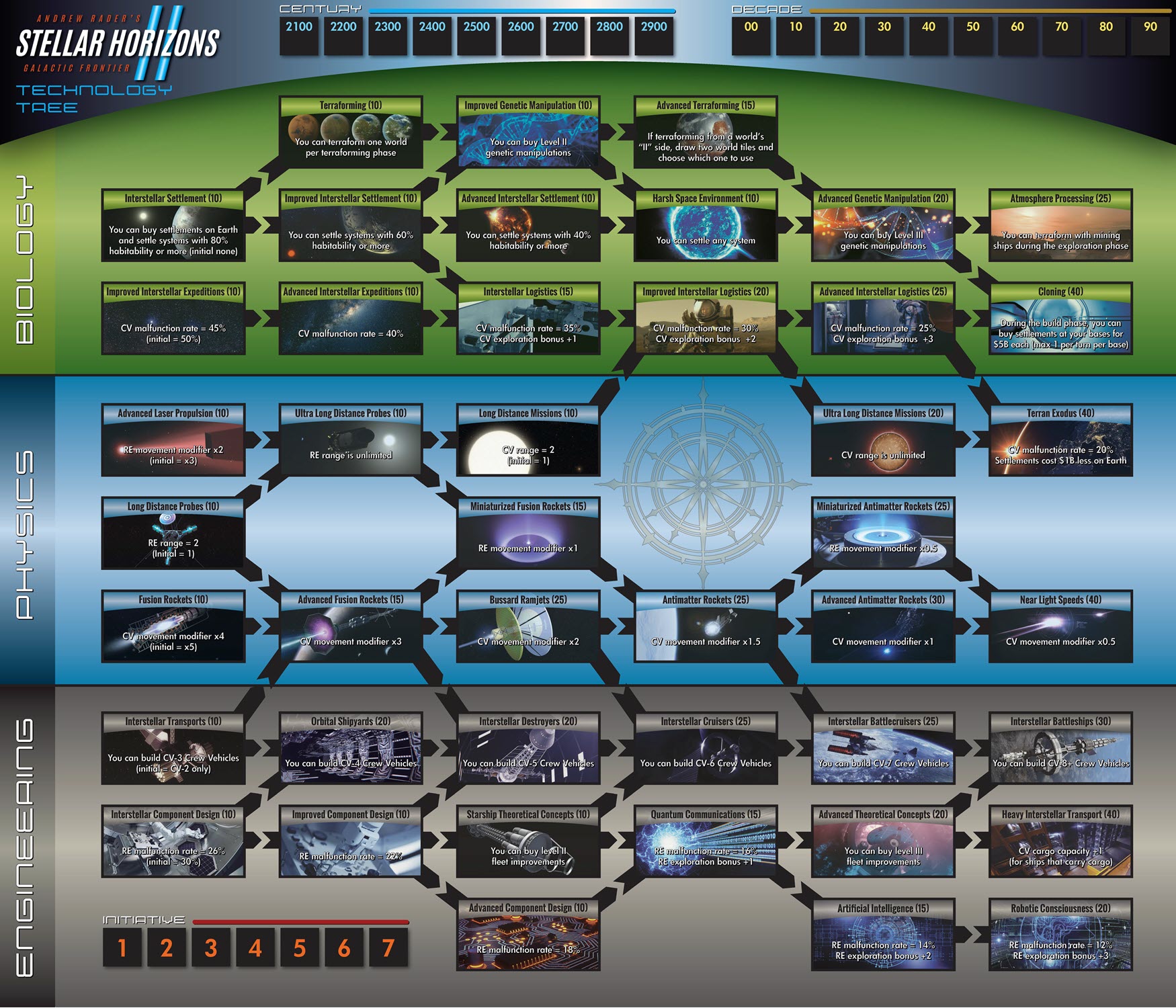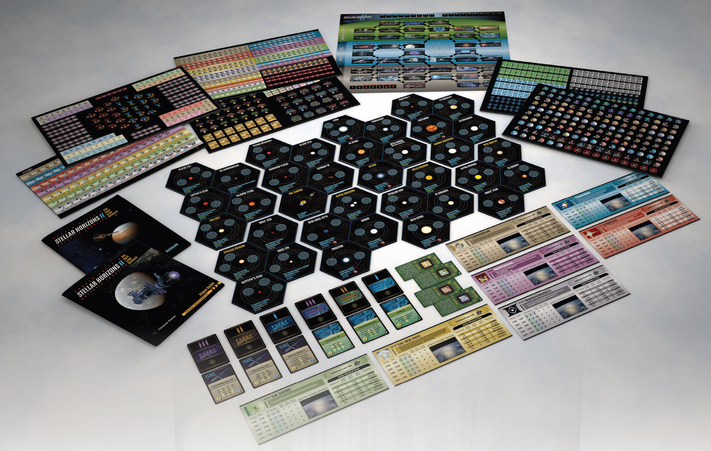 Stellar Horizons 2: Galactic Frontier traces humanity’s journey into the galaxy over the coming centuries (2100-2900) by Andrew Rader. Players will control one of seven factions vying to establish an interstellar empire, each with unique advantages, drawbacks, and special abilities. Through competitive and cooperative scenarios and campaigns, each new star brings the discovery of new planet types, and new opportunities for settlement, trade, or conquest. Along the way, you’ll develop technologies and customize your ships, building a faster, stronger, and more capable starfaring fleet.