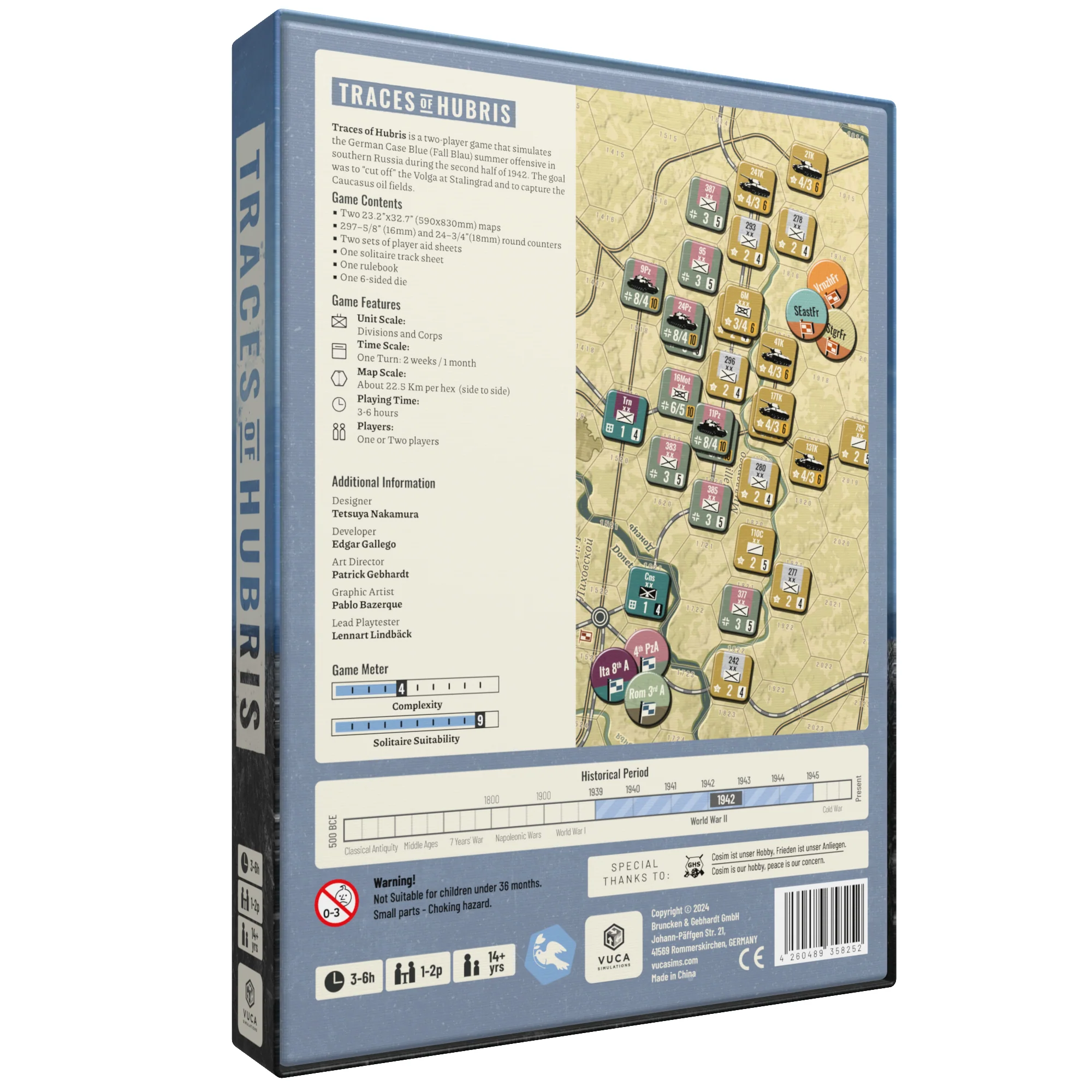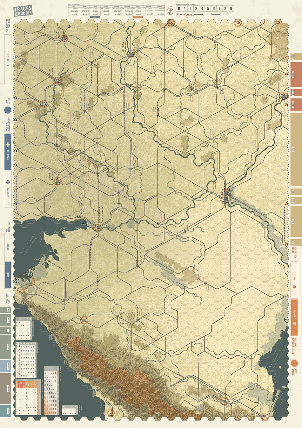 Traces of Hubris is a two-player game that simulates the German Case Blue (Fall Blau) summer offensive in southern Russia during the second half of 1942. The goal was to “cut off” the Volga at Stalingrad and to capture the Caucasus oil fields.